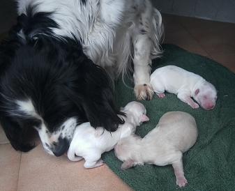 Roke, Roki und Roko von Reina. Reina, die Mutter, ist eine, am 1.8.2008 geboren, ca. 45 cm große Cockerspanielmischlingshündin und wurde von einer Familie als Welpe aufgenommen. Jetzt hat sie 3 Babys bekommen und diese darf sie noch bei der Familie versorgen, bis sie abgeholt wird, mit Babys und auf einer privaten Pflegestelle untergebracht wird. Reina ist eine liebe Hündin, lebt im Haus, ist verträglich und kommt mit allen aus. Ihre Welpen, Roke, Roki und Roko, drei Rüden, sind am 20.3.2011 geboren. Reina ist geimpft, gechipt und entwurmt. Ihr Mittelmeercheck ist, durch einen Bluttest, negativ getestet. Jetzt sucht die tolle Hündin ein Zuhause. Renina wird von ihrer Pflegemutter verwöhnt und versorgt. Sie können die Hundefamilie gern besuchen. Sie freut sich auf Ihren Besuch. Wenn Sie ein Körbchen frei haben für Roke, Roki oder Roko, bitte einfach schreiben oder anrufen.