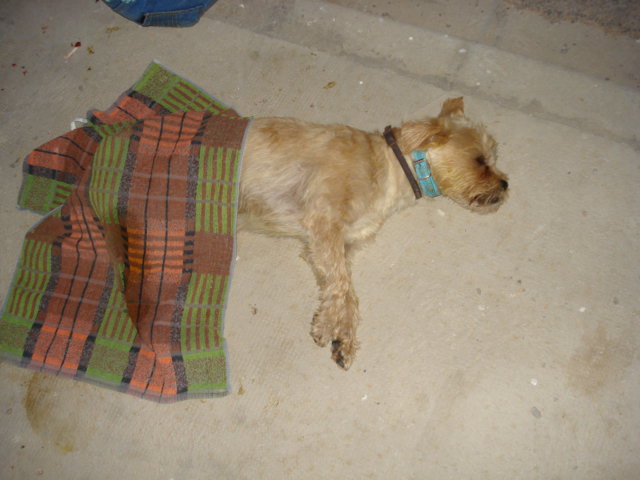 Pelusa 1 Tag vor seiner Reise ins Glück. Der kleine Hund Pelusa hatte ein Zuhause in Deutschland und sollte am Morgen des 8.8.09 mit uns nach Hause fahren. Am Abend vorher versuchte er durch ein Loch im Zwinger zu kriechen und wurde dabei so schwer verletzt, dass er sofort in die Klinik nach Albacete gefahren werden musste. Pelusa hatte sich den Bauch aufgerissen. Die Ärzte gaben ihr Bestes, konnten aber Pelusa nicht mehr helfen und der arme Kerl verstarb am frühen Morgen :-(
